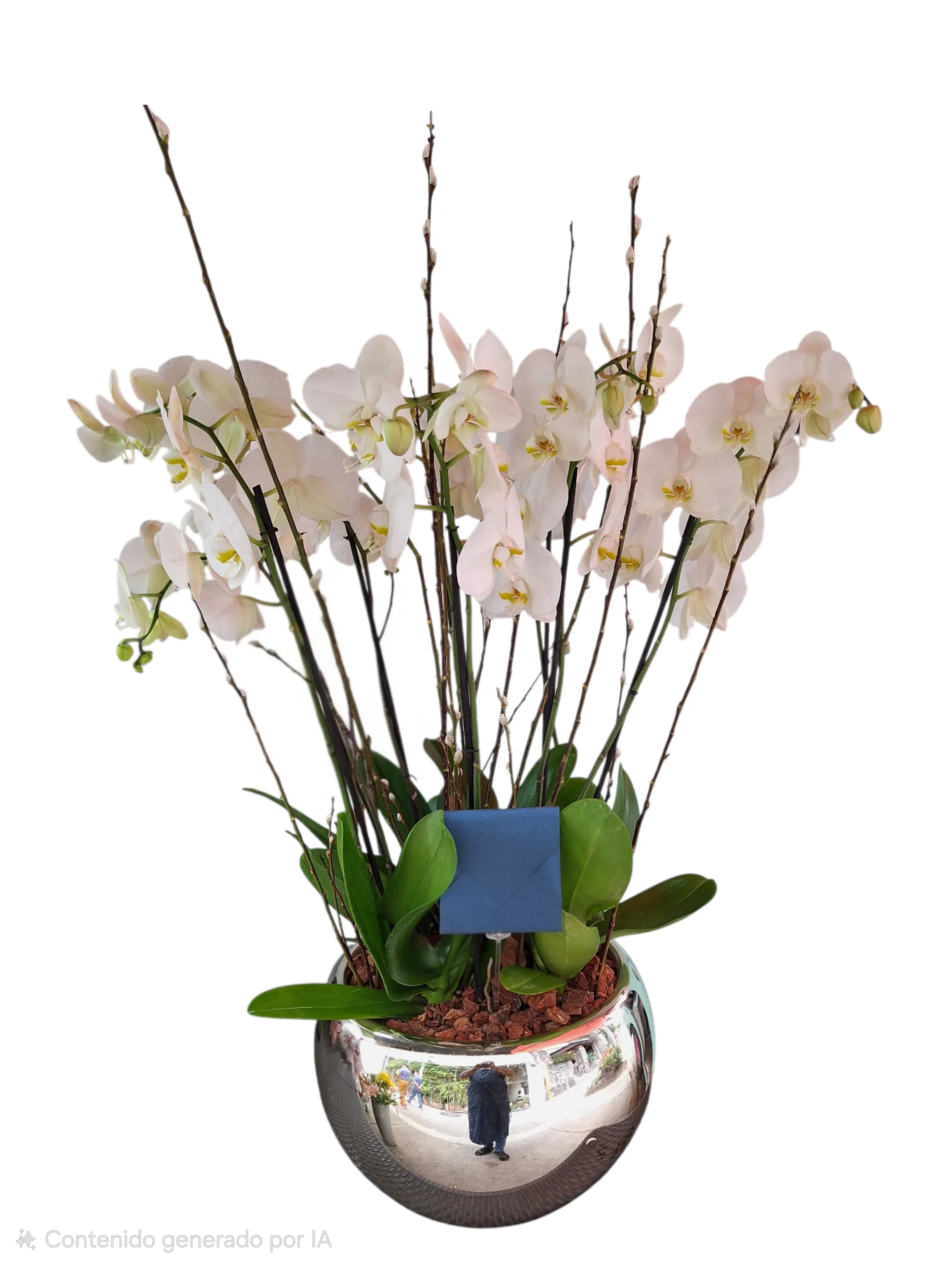 Arreglo 4 plantas de orquídea doble vara blanca